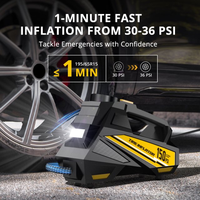 • 150 PSI inflation power for fast and efficient air delivery
