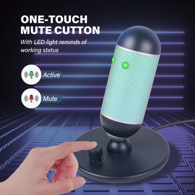 This microphone features 7 dynamic RGB lighting effects that add energy and personality to your desk. With a simple touch control on top, you can switch lighting modes or turn them off completely. It’s perfect for gamers, streamers, and anyone who wants a modern, professional-looking workspace.